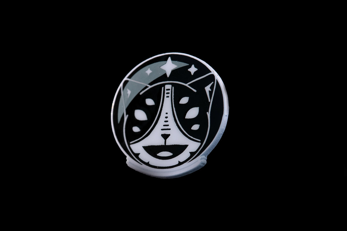 1" Hatpin with two pinbacks. Black and white. "Duffrey" written on back.